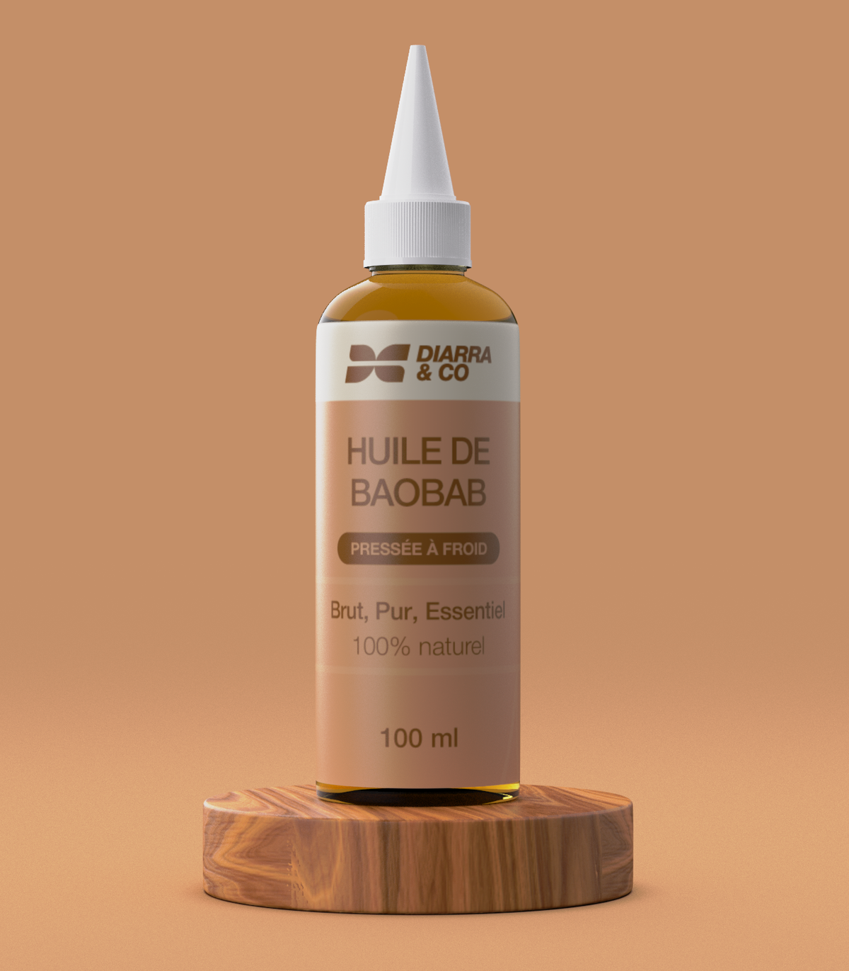 Extraite des graines du fruit du baobab ( Adansonia digitata ), arbre emblématique d'Afrique, cette huile précieuse est réputée pour ses vertus exceptionnelles sur la peau et les cheveux. Sa composition unique en acides gras essentiels, vitamines et antioxydants en fait un allié incontournable pour la nutrition, la régénération et la protection cutanée et capillaire.